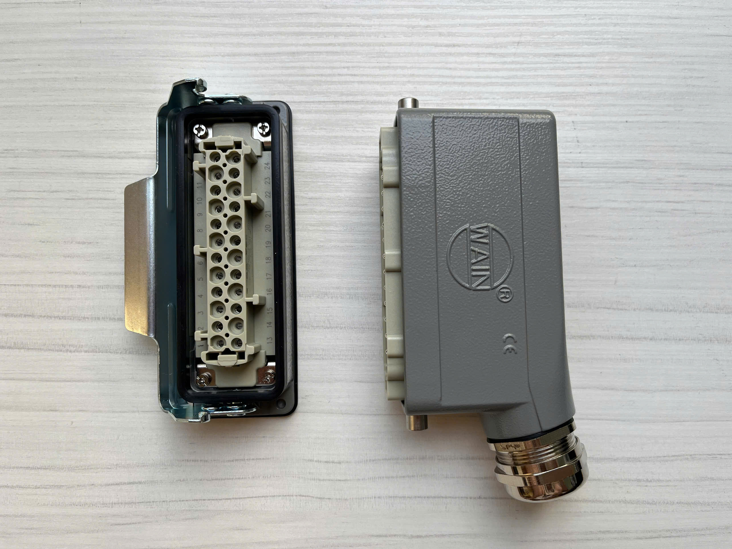 Đầu nối cáp điện 24 chân 16A hãng Wain ( H24B-BK-1L/W , H24B-SE-2B-M32 , HE-024-M, HE-024-F )